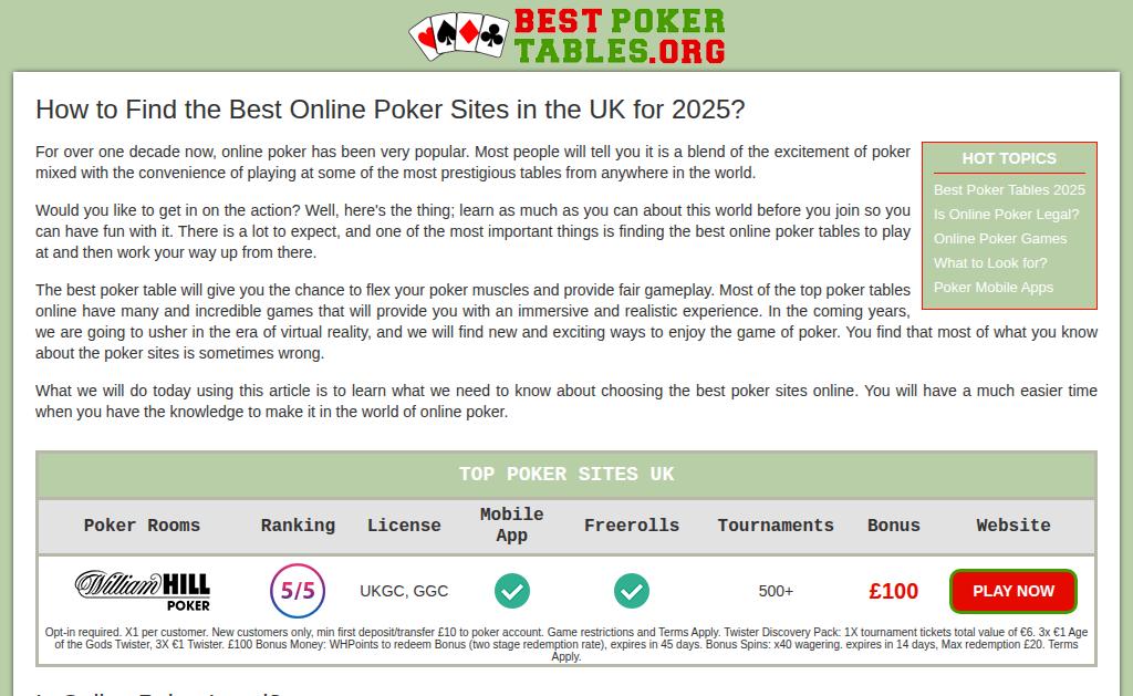 Selling New Poker Domain: bestpokertables.org