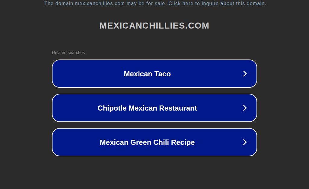 mexicanchillies.comMexicanChillies.com Chillies from Mexico are traded World-wide. Its Chillies are quite famous. Great potential domain for business. Godaddy Push...- Analytics:
