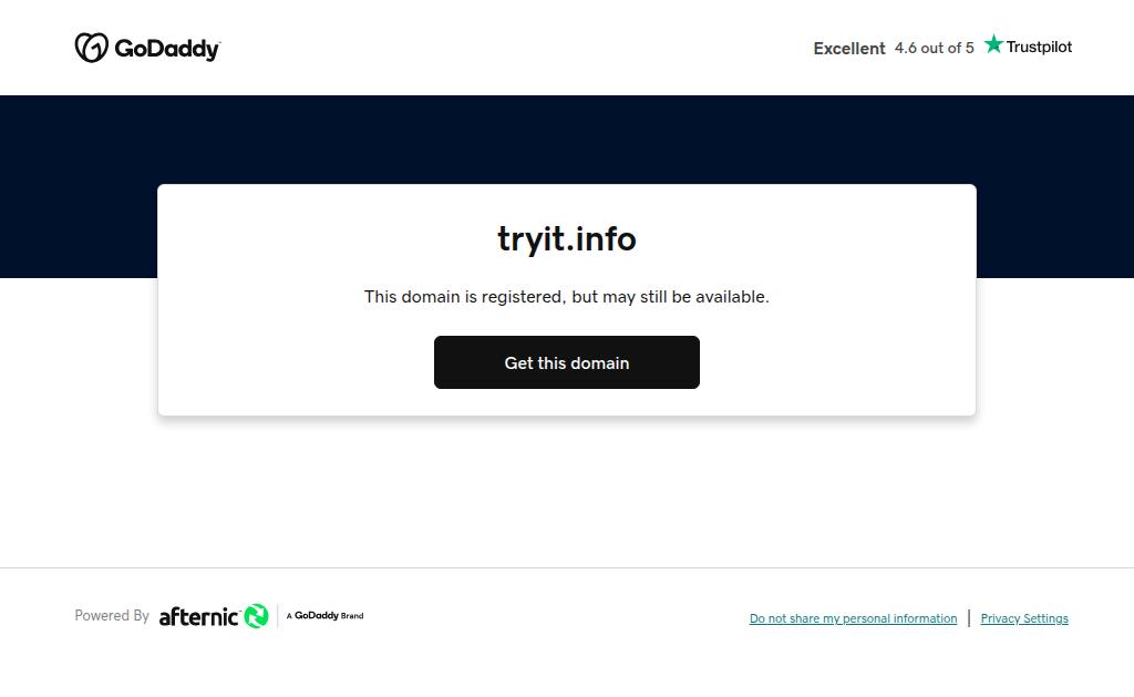 tryit.infoTryit.info is very generic, short and easy to remember. Great as informational website. Other tryit TLDs are not developed.- Analytics: