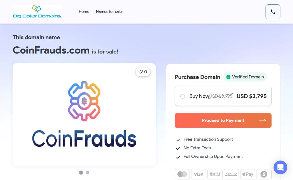 coinfrauds.comWhy are you selling this site? Domain only. How is it monetized? Domain only. Does this site come with any social media accounts? No. How much...- Analytics: