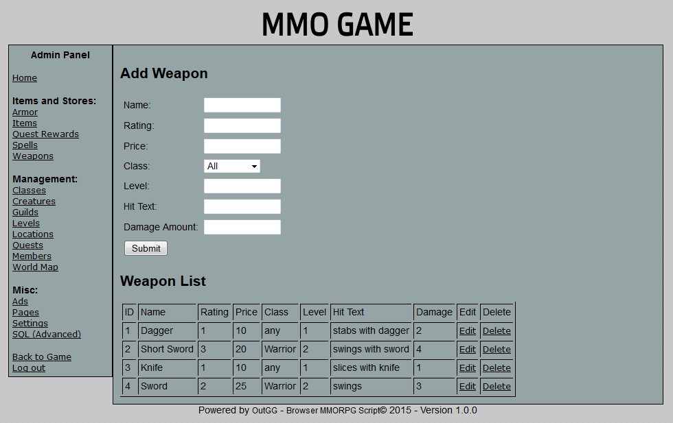 Browser Based MMORPG games have been an enormous success in the past and the present. It's now your chance to get in on that success and have your very own game ready for everyone to play. We provide you with everything you need to start your game within 5 minutes.