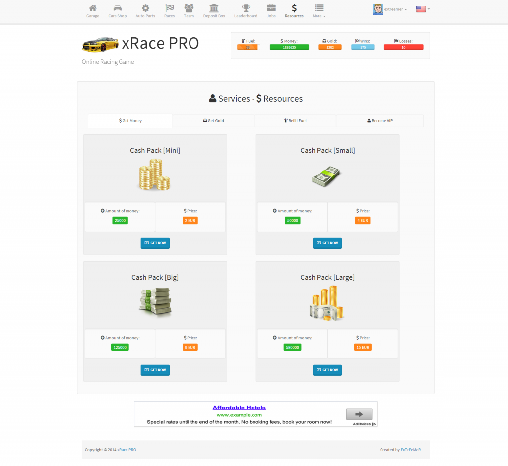 Also one of the important features of xRace is that you can earn real money through the integrated paid services and advertising in the game – just invest as purchase it here and create your own game from which to make money.