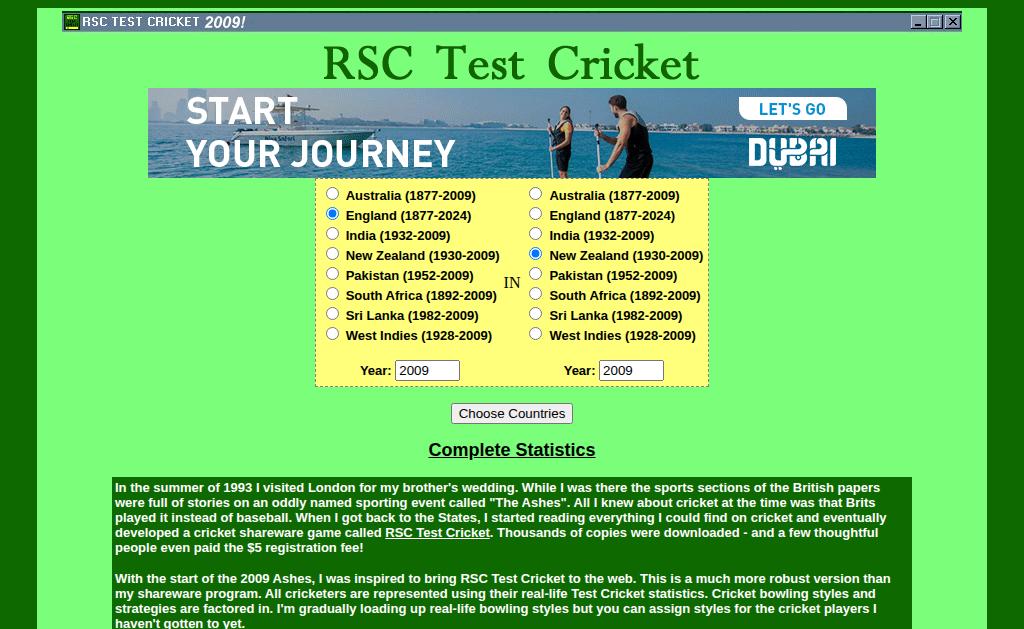 rsctestcricket.comWhy are you selling this site? I'd like to see somebody give this game the care it deserves. If you like cricket, I think you'll like this game....- Analytics: