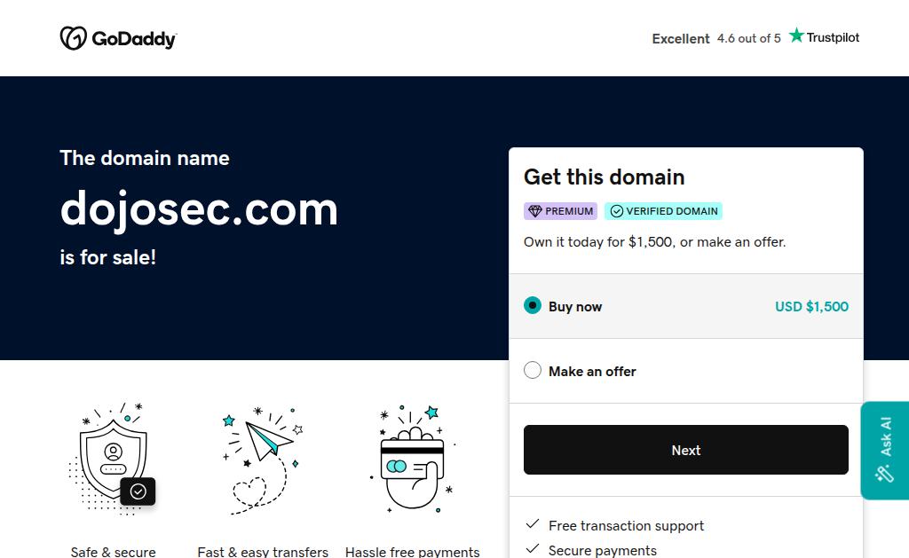 dojosec.comWhy are you selling this site? I have too many sites to keep updated How is it monetized? No Does this site come with any social media accounts?...- Analytics: