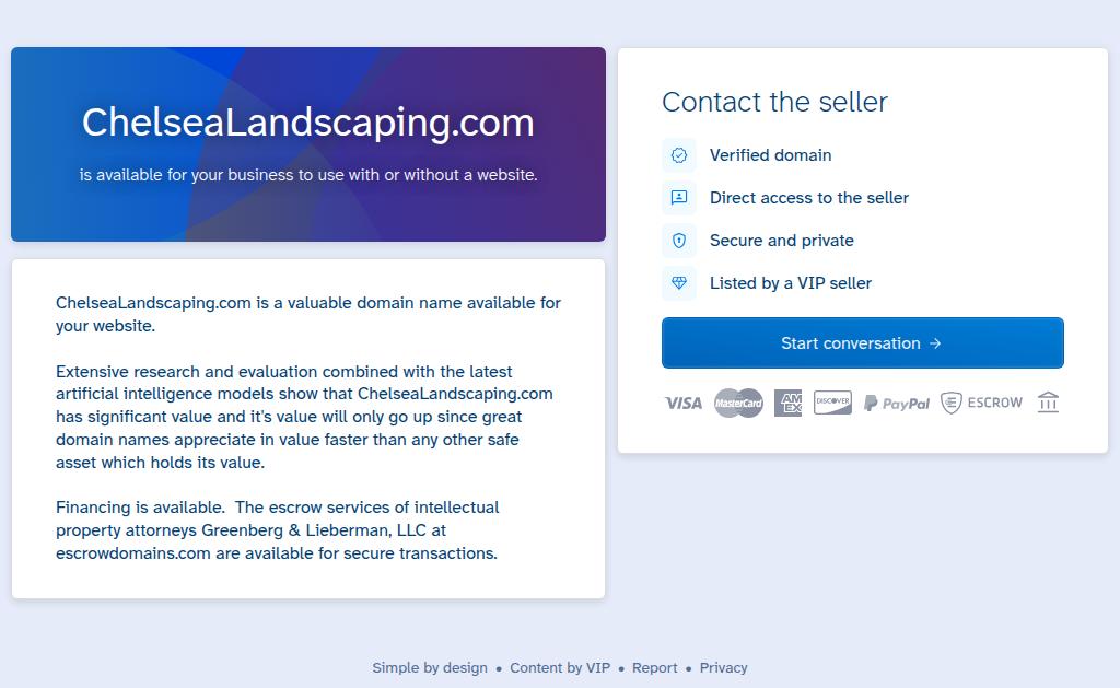 chelsealandscaping.comWhy are you selling this site? I have become involved with another client in another region and no longer require the use of this website. How...- Analytics: