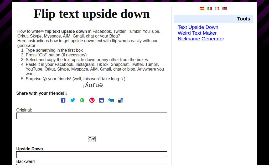 Write text upside down and Weird text maker for social network (13 yo site)