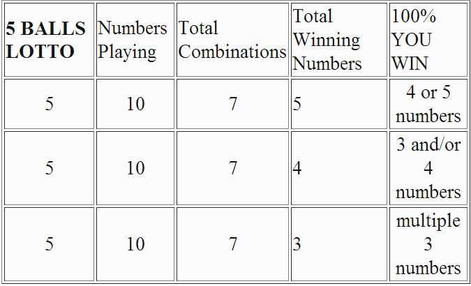 5 NUMBER LOTTO, 10 BALLS, 7 COMBINATIONS