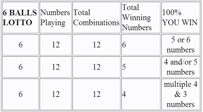===> 6 NUMBER LOTTO, 12 BALLS, 12 COMBINATIONS